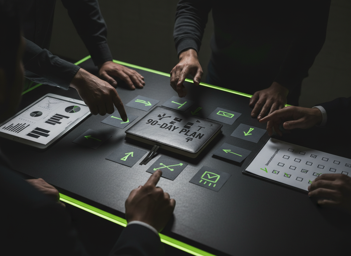A clear baseline, a prioritized 90-day plan, and an execution cadence (owners, weekly scorecards, and accountability). We also begin implementing quick-win improvements immediately.